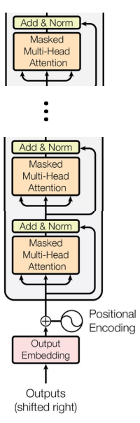 - 해당 첫 번째 hidden state에 대해 Masked Multi-Head Self-Attention 연산을 적용한 후, 위치별 Feed Forward Layer를 통해 다음 hidden state를 생성