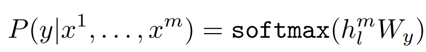 - 입력 데이터를 사전 학습된 모델에 전달하여 최종 Transformer 블록의 hidden state hlm을 얻은 다음, 추가된 linear layer (파라미터 Wy) 를 사용하여 를 예측