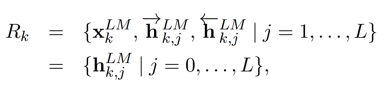에 대해, L층으로 구성된 biLM은 다음과 같은 2L + 1개의 representation이 계산됨