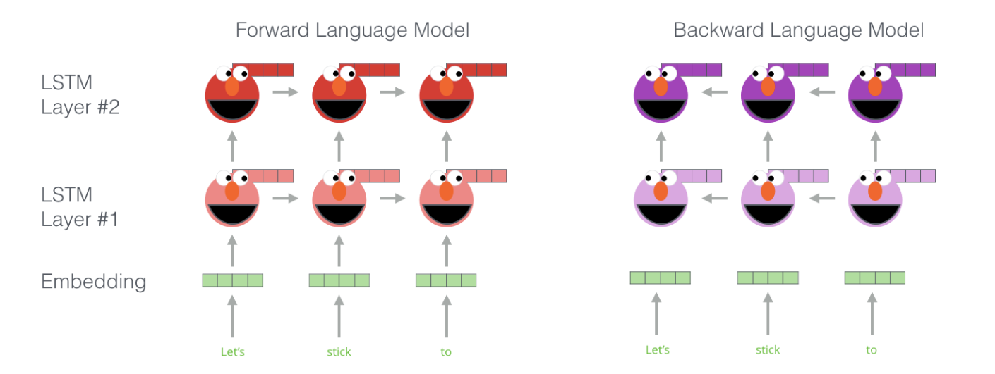 - 본 연구에서는 같은 단어라도 문장이 제공하는 맥락에 따라 그 단어의 표현(벡터값)이 달라진 ELMo(Embeddings from Language Models)라는 새로운 방식 제안