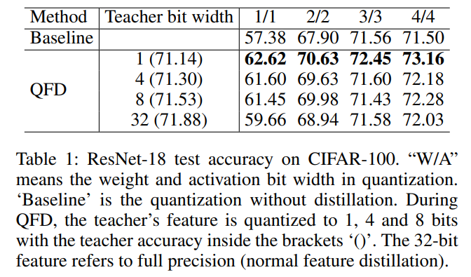 - QFD는 먼저 양자화된 표현을 교사(teacher)로 학습한 뒤, 지식 증류(KD, Knowledge Distillation)를 사용하여 네트워크 양자화