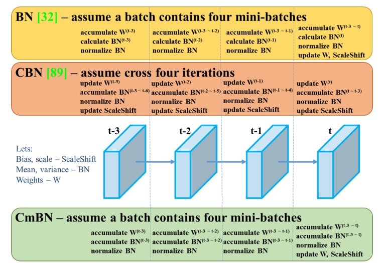 CmBN | 현재 배치 내부 미니배치 | 단일 GPU에서도 안정적 | 일부 상황에서 정확도 감소 |