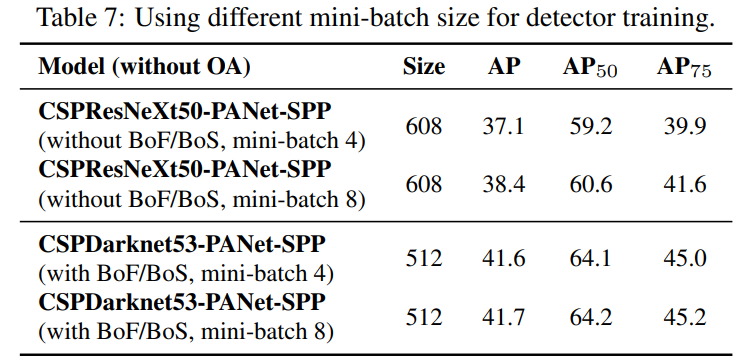 - BoF + BoS를 적용하면 mini-batch 크기에 민감하지 않음
